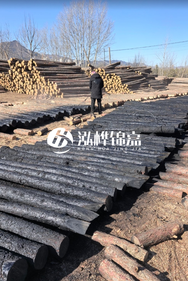 - 碳化處理:表面烤焦形成碳化層(成本+5~10元/根),防蟲防腐效果顯著,但降低木材強度。